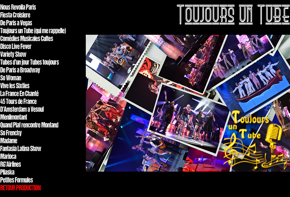Nos 18 artistes sur scène se donneront à « plein Tube » pour vivre ensemble un spectacle fait d’énergie, d'enthousiasme, de fête, de joie et d'émotion. Nos musiciens, danseuses, danseurs, chanteuses et chanteurs évolueront sur une mise en scène et un décor exceptionnels pour que ce voyage de joyeuse nostalgie musicale enrichisse encore le souvenir de ces années incroyablement riches.
